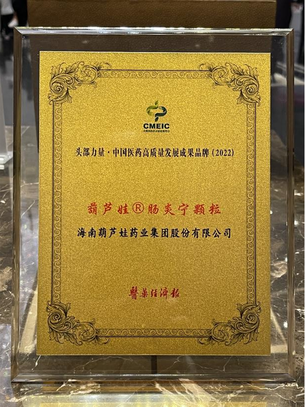 在本次发布会上,公司重点产品mg冰球突破牌肠炎宁颗粒同时荣膺“头部力量·中国医药高质量发展成果品牌(2022)”。mg冰球突破牌肠炎宁颗粒(2g),传承经典名方,临床广泛用于成人及儿童急慢性胃肠炎、腹泻等疾病的治疗,由于其杰出的临床价值,被纳入国家中医药管理局相关专家项目组制定的《中成药治疗小儿腹泻病临床应用指南》。