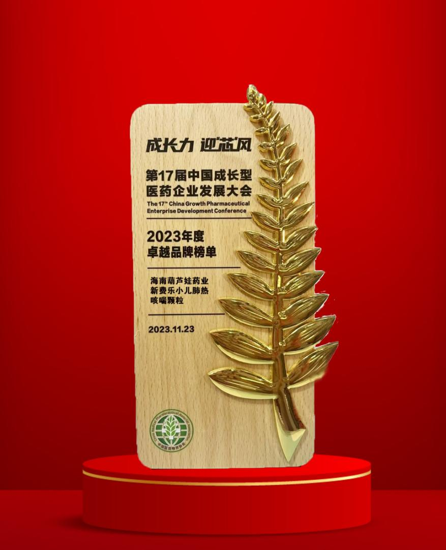 大会期间,一年一度的“金叶奖•2023年度医药行业风云人物奖”榜单重磅揭晓,mg冰球突破药业集团党委书记、董事长刘景萍荣耀上榜。金叶奖是为了表彰广大医药企业家或企业为行业茁壮发展做出的卓越贡献而设立的奖项,“金”象征着品质、品牌、影响力,“叶”象征着生命、健康、成长力。金与叶结合,有“敬业、兢业、竞业”之意。此外,集团黄金单品新费乐®小儿肺热咳喘颗粒凭借卓越的产品质量和品牌影响力赢得了行业、市场和消费者的肯定,获得了“2023年度卓越品牌奖”。