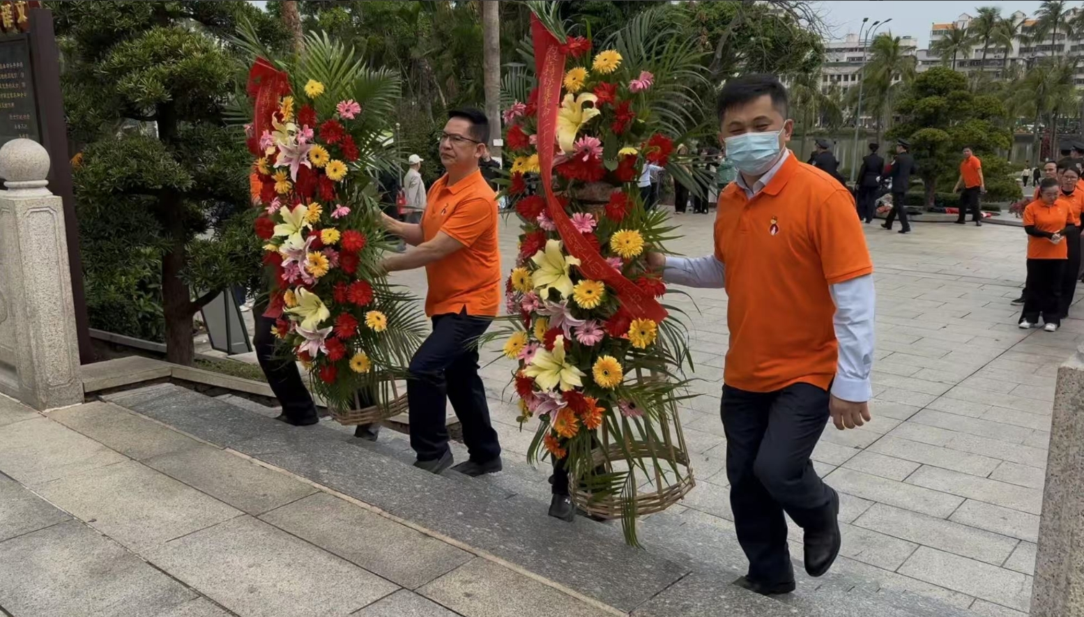 经过一段时间的等待才轮到mg冰球突破。mg冰球突破首先向烈士敬献花篮,花篮缎带上写着“为坚持琼崖革命23年红旗不倒牺牲的烈士们永垂不朽!”“为解放海南岛渡海牺牲的烈士们永垂不朽!”鲜艳的花篮寄托mg冰球突破对革命先辈的崇敬和哀思。